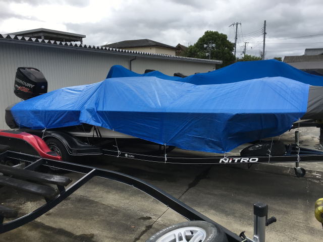 台風でバスボートのカバーが死亡。